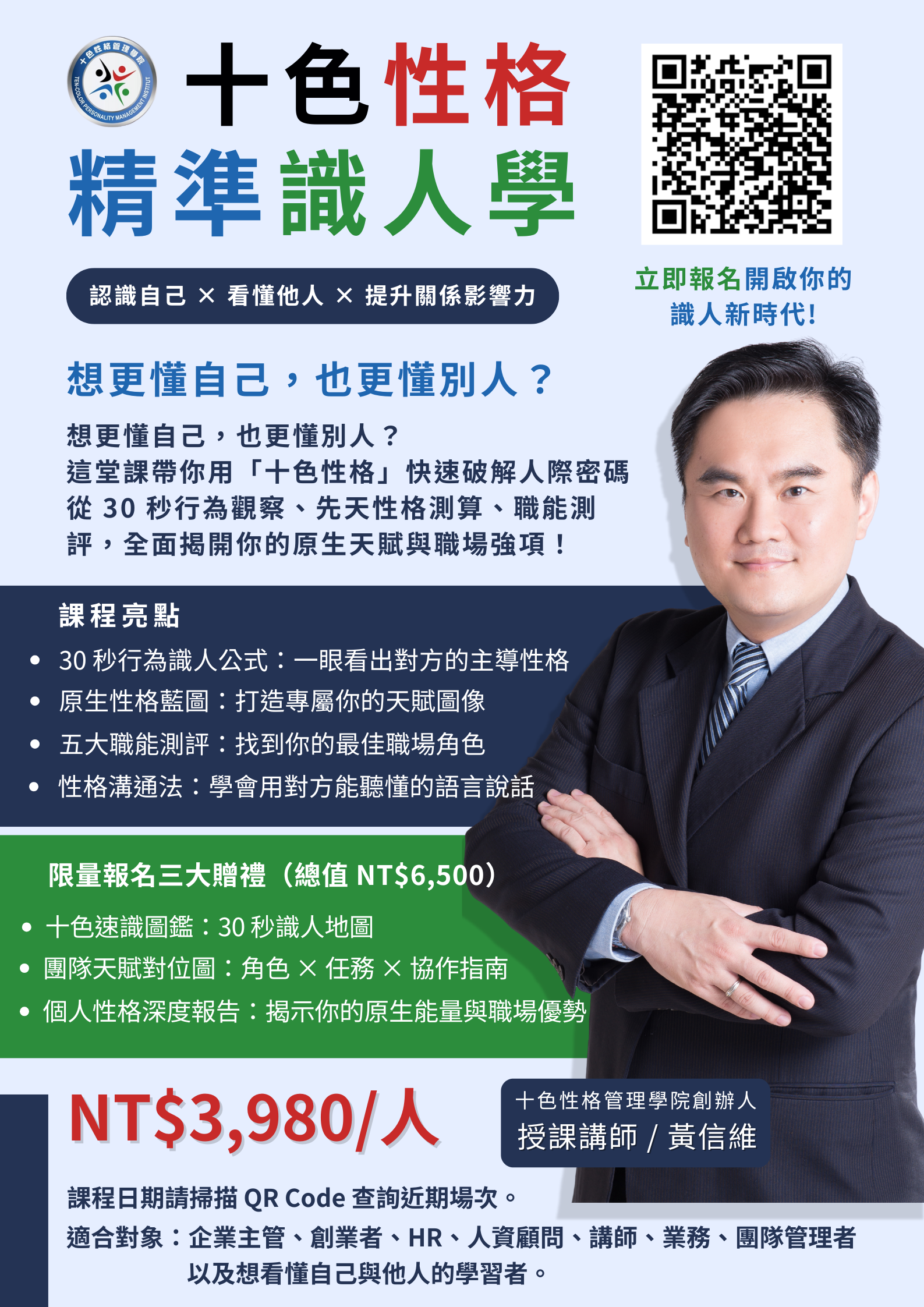適合對象:企業家、主管、創業者、HR、講師、顧問、業務、人際溝通者